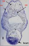 rrbp1.S (ribosome binding protein 1 S homeolog) gene expression in Xenopus laevis embryo, assayed via in situ hybridization,transverse section through heart region, NF stage 32, lateral view, anteriorleft, dorsal up.