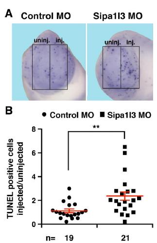 Figure S5: TUNEL staining in Sipa1l3 depleted embryos