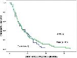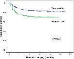 Fig. 5. Kaplan-Meier curves for disease-specific survival (DSS) after recurrence of patients with low or high levels of targeting protein for Xenopus kinesin-like protein 2 (TPX2) expression. The log-rank test showed no significant difference between DSS and TPX2 expression in patients after recurrence (p = 0.52)