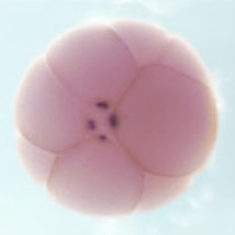 e2f1 (E2F transcription factor 1) gene expression in Xenopus laevis embryo, assayed via in situ hybridization, NF stage 8, vegetal view. |