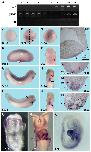 Fig. 7. : Cardiac phenotype after loss of Rcsd1 and after rescue with murine Rcsd1 constructs. A. Cardiac phenotype after Rcsd1 depletion and after rescue with murine Rcsd1 constructs at stage 43. The three upper rows show embryos from lateral and ventral view and the respective isolated hearts. The three lower rows show analysed ventricular trabeculation by cardiac Troponin T (Tnnt2) staining. Rows top to bottom: ventral view of the embryos, close-up of the respective hearts and section through the hearts cardiac phenotype after loss of Rcsd1 was rescued by co-injection with the full-length murine Rcsd1 construct and Rcsd1δNLS, although ventricular trabeculation was only partially restored to normal physical appearances. Rcsd1δCPI however was not able to restore cardiac anatomy and physiology. a, atrium; oft, outflow tract; t, trabeculae; v, ventricle, NLS: nuclear localization signal. (Lateral view: red arrowhead highlights cardiac edema upon loss of Rscd1. White arrow heads highlight the cardiac region in embryos of different rescue experiments. Scale bars: upper part: lateral view: 1000 μm; ventral view and isolated hearts: 250 μm; lower part Tnnt2: ventral view: 1000 μm; hearts and sections: 100 μm. B. Quantitative presentation of data shown in A. C. Injection of Rcsd1 MO lead to a reduced heart rate (beats per minute, bpm), which is rescued by co-injecting murine full-length Rcsd1 or Rcsd1δNLS mRNA but not by Rcsd1δCPI mRNA. n, number of independent experiments; N, number of analysed embryos; ng, nanogram. Error bars indicate standard error of the means (s.e.m.). n.s., not significant; **, pâ¤0.01; ****, pâ¤0.0001; calculated by a non-parametric Mann-Whitney rank sum test. |