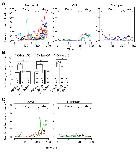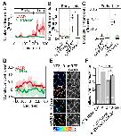 Fig. 4. Extracellular ATP in Ca2+ fluctuations and NTC. (A) Mean number of Ca2+ transients in embryos expressing an E-NTPDase1 mutant (δACR; red) or E-NTPDase1 (NTPDase1; green), shown as smoothed curves obtained by averaging the originally counted values at a given time point with those of neighboring time points (25 time points total). Time interval of observations is 40 s. Shaded area indicates the s.d. (B) Number of single-cell Ca2+ transients in the early and late phases of NTC. *P<0.05, two-sided MannâWhitney U-test. (C) Number of multicellular Ca2+ transients in the early and late phases of NTC. *P<0.05, two-sided MannâWhitney U-test. (D) The mean cross-correlation between the closing speed and the total R-GECO1.0 value in embryos expressing a mutant E-NTPDase1 (δACR; red) or E-NTPDase1 (NTPDase1; green). The shaded area indicates s.d. n=3 (δACR), 5 (NTPDase1) embryos. Results in A-D are for the same data set. (E) Images showing the yellow-tocyan (yellow/cyan; Y/C) fluorescence ratio value of AT3.10RK-GPI (top, control), AT3.10-GPI (second to bottom) on the surface of NP cells, by FRET analysis (left). The mean ratio was measured from the masked region generated by membrane-targeted mRFP (right). Scale bar: 30 μm. (F) The mean yellow-to-cyan fluorescence ratio value of AT3.10-GPI on cell surfaces in the NP by FRET analysis. The number of embryos examined is indicated in each bar. Error bars show s.e.m. **P<0.01 and ***P<0.001, two-sidedWelchâs t-test. n.s., not significant. In B and C, the box and whiskers of these plots indicate maximum, third quarter, median, first quarter and minimum values of each groups, respectively, from upper side to the bottom of the graphs. |