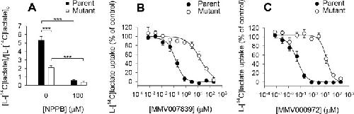 The Malaria Parasite's Lactate Transporter PfFNT Is the Target of Antiplasmodial Compounds Identified in Whole Cell Phenotypic Screens.