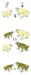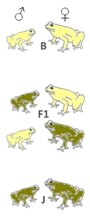 genomic variants in X. laevis: a straight J, a straight B and an F1 cross.