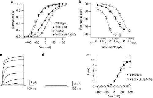 Es-Salah-Lamoureux, Blockade of permeation by potassium but normal gating of the G628S nonconducting hERG channel mutant. 2011, Pubmed , Xenbase