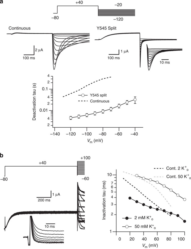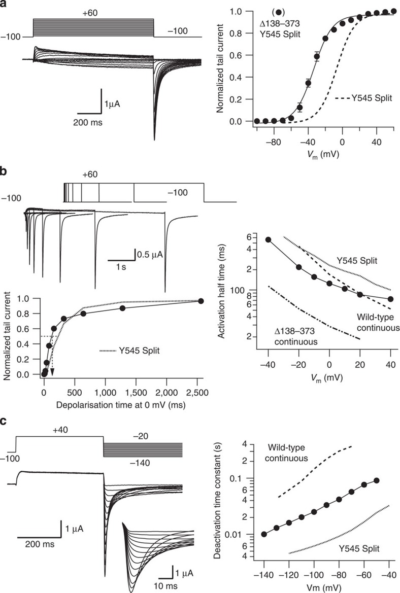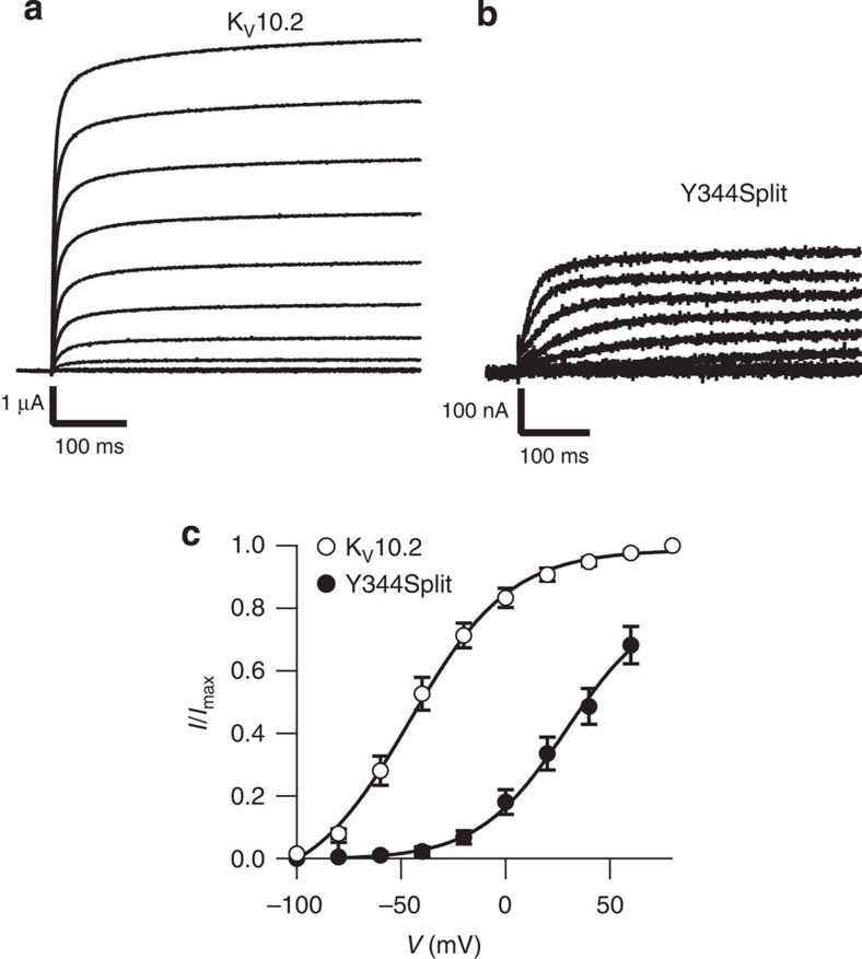 Voltage-dependent gating of KCNH potassium channels lacking a covalent link between voltage-sensing and pore domains.