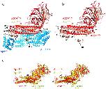 Fig. 6. Apc5 has an N-terminal helical domain (Apc5N) connected by a disordered linker to a TPR superhelix of 13 TPR motifs (Apc5TPR). (a) Cartoon of EM structure of human Apc5 color-ramped from blue to red from N- to C-termini. The small subunit Apc15 that contacts Apc5 is also shown. (b) Stereoview of a superimposition of Apc5N based on human Apc5N EM coordinates (blue) and Xenopus Apc5N X-ray (yellow) coordinates. Major structural differences involve the α1/α2 and α5/α6 loops that contact Apc4.
