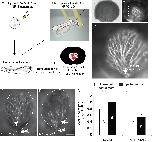 Fig 2. Cultured retinal growth cones loaded with NFPC morpholino do not exhibit chemoattraction to Netrin-1. (A-C) Phase contrast images of retinal neurites cultured from uninjected (A), control morpholino-loaded (Con-MO; B) and NFPC morpholino-loaded (NFPC-MO; C) retinae. Neurites from uninjected (A) and Con-MO-loaded (B) retinae exhibit robust turning towards the point source of Netrin-1. Neurites loaded with the NFPC-MO, however, are not attracted towards Netrin-1 (C). (D) Cumulative distributions of turning angles of each sample group. (E) Mean turning angles of the experimental groups reveals that, whereas uninjected and Con-MO-loaded neurites exhibit attraction to Netrin-1, NFPC-MO-loaded neurites do not. * p < 0.05, Kolmogorov-Smirnov test. Panel F shows a summary of the trajectory plots from the uninjected and NFPC-MO experimental groups exposed to Netrin-1. Each line represents a single growth cone trajectory; the origin represents the centre of the growth cone at 0 min, and positive (+ve) and negative (-ve) turning angles are indicated. Scale bar in A: 10 μm. https://doi.org/10.1371/journal.pone.0141290.g002 |