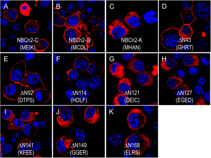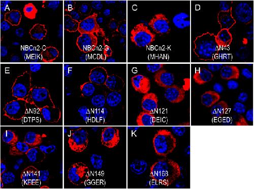 Effects of Nt-truncation and coexpression of isolated Nt domains on the membrane trafficking of electroneutral Na+/HCO3- cotransporters.