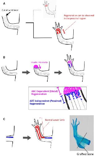 Bone pattern formation in mouse limbs after amputation at the forearm level.
