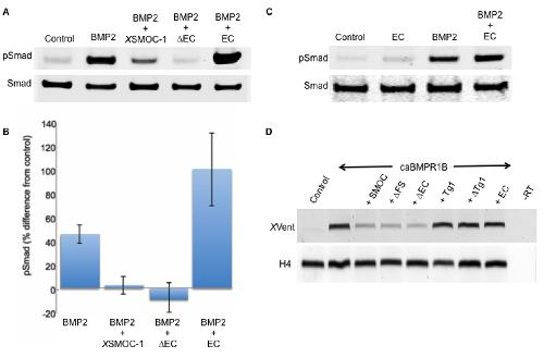 Thomas, Xenopus SMOC-1 Inhibits bone morphogenetic protein signaling downstream of receptor binding and is essential for postgastrulation development in Xenopus. 2009, Pubmed , Xenbase