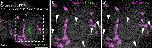 Figure 2—figure supplement 1. Putative NECs in the skin of embryonic zebrafish are not neural crest-derived.(a–b’) Three-dimensional rendering of the eye of a 3-dpf Tg(crestin:creERT2);Tg(-3.5ubi:loxP-GFP-loxP-mCherry) embryo, immunostained in whole-mount for serotonin and mCherry. Serotonergic cells are scattered in the epidermis over the eye, as reported (Coccimiglio and Jonz, 2012), but none is mCherry-positive, i.e., neural crest-derived (arrowheads). For associated z-stack movies, see Videos 1 and 2. Scale-bars: 100 μm in a; 50 μm in b.DOI: http://dx.doi.org/10.7554/eLife.21231.006 |