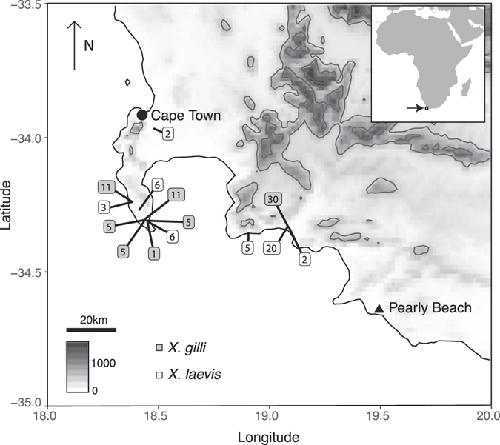 Comparative molecular phylogeography of two Xenopus species, X. gilli and X. laevis, in the south-western Cape Province, South Africa.