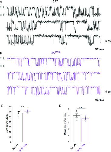 Figure 3. . NMDARs containing GluN2AR586K show normal single-channel