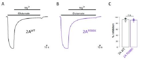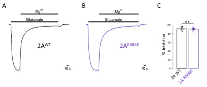 Figure 2. . NMDARs containing GluN2AR586K show normal block by