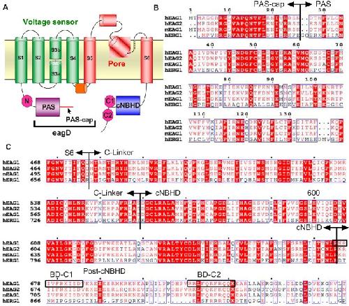 Gianulis, Direct interaction of eag domains and cyclic nucleotide-binding homology domains regulate deactivation gating in hERG channels. 2013, Pubmed