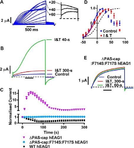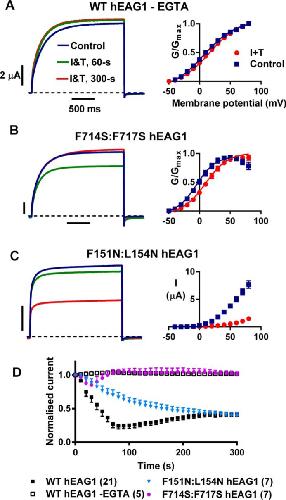 Garg, Tuning of EAG K(+) channel inactivation: molecular determinants of amplification by mutations and a small molecule. 2012, Pubmed , Xenbase
