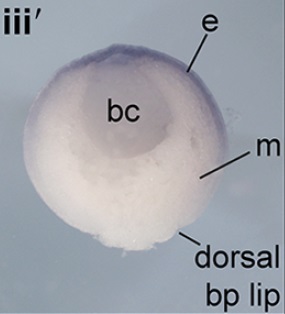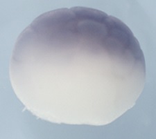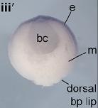 pgam5 (PGAM family member 5, serine/threonine protein phosphatase, mitochondrial) gene expression in Xenopus laevis embryo, assayed via in situ hybridization, NF stage 6.5, horizontal view. |