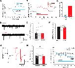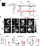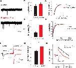 D-Serine is an endogenous coagonist of NMDARs at retinotectal synapses in the optic tectum. A, B, Example NMDAR-mediated retinotectal ESPCs recorded following optic chiasm stimulation in 0 mm Mg2+, in the presence of NBQX (20 μm) and PTX (100 μm), from Stage 47 tadpoles (A) before (black trace) and after (blue trace) wash-on of the NMDAR coagonist site antagonist L-689,560 (20 μm) and (B) agonist d-serine (500 μm, red). Insets, Averages of three trials during baseline and after 3 min of drug application. C, Mean relative changes in NMDAR-mediated EPSC amplitude measured during the last 3 min of drug application. D, Example AMPAR-mediated mEPSC traces recorded from tectal neurons at â70 mV before (top) and after d-serine (bottom) application. Average mEPSC (E) frequency and (F) amplitude across the population of cells before and after d-serine application are unchanged (n = 6, frequency: p = 0.95, amplitude: p = 0.35, paired t test). G, Examples of evoked AMPAR-mediated EPSCs recorded during a 50 ms ISI paired pulse protocol before (black) and after d-serine (red) application. H, Average PPR before and after d-serine application across the population of cells is unaltered (p = 0.60, n = 7, paired t test). I, Average NMDAR-mediated EPSC response decrement with RgDAAO (0.2 U/ml, blue, n = 5; ***p = 0.00037) wash-on and NMDAR-mediated EPSCs showing lack of effect of heat-inactivated RgDAAO (gray, n = 3, p = 0.70, t test). |