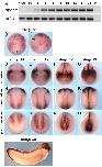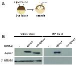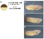 Fig. 2. Spatiotemporal expression pattern of Xenopus laevis apoc1. (A) The temporal expression pattern of apoc1 during Xenopus development (4-cell stage, stages 10-32) was determined by RT-PCR (RT- is without reverse transcriptase from stage 32). (B-P) The spatiotemporal expression pattern of apoc1 determined by whole mount in situ hybridization. (B,C) Apoc1 expression at stage 11; bp - the closing blastopore. Anterior view (D-G), dorsal view (H-K), posterior view (L-O) of stage 14 (D,H,L), stage 15 (E,I,M), stage 17 (F,J,N) and stage 20 (G,K,O) embryos. (P) Lateral view of a stage 30 embryo. |