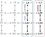 Fig 6. Proposed model.A schematic of proposed receptor model for the activation of WT 3α4:2β2 nAChR. The model includes unbound (R), one agonist bound (AR), two agonist bound (A2R) and three agonist bound (A3R) receptor states. Intermediate ‘flip’ state (RF), Open state (RO) and desensitized state (RD) are shown. Blue frame includes receptor activation model for agonists (eg. Saz-A and TC-2559) that selective bind at the α4-β2 interface and red frame shows receptor activation for ligands selective for α4-α4 interface (NS9283). Dashed lines and grey states indicate transitions and states not discretely tested in our experiments but are considered likely to exist.