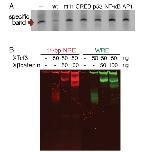 (CâF) EMSA analysis. Every panel shown comes from a single gel. Each experiment was repeated two to four times. In all gels, the red arrow indicates the specific EMSA band.