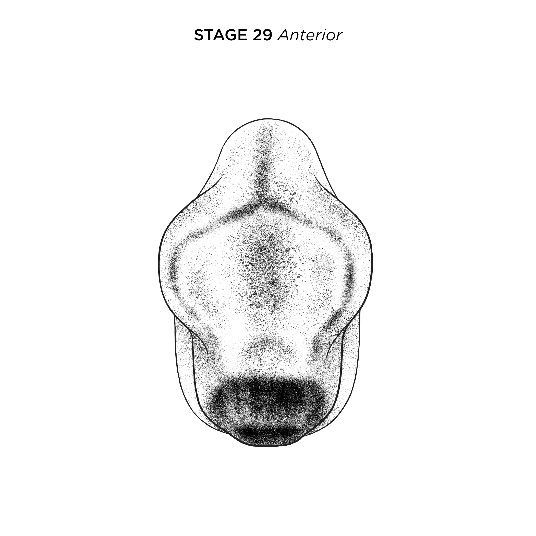 Xenopus laevis embryo at NF stage 22, anterior view, dorsal up. Scale bar= 1mm. Illustration © 2017 Natalya Zahn, CC BY-NC 4.0.