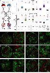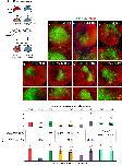 Supplementary Figure 6 | Reaggregation assay. (a) Example of grid used to measure the index of dispersion, here of a negative control aggregate. The green spots correspond to the positions of the labelled nuclei. (b) Principle of measurement of the relative length of heterotypic interface used to quantify the degree of separation in the reaggregation experiments of Fig.5: The diagrams represent symbolized aggregates (light blue circles) in which the labelled cells occupy the same area (black surface), but with different distributions. These illustrations show how LHI can be increased by irregular/convoluted interfaces (center) and by incomplete sorting of single or small groups of cells (right). Real aggregates varied in terms of size and of the relative number of cells of the two populations. In order to standardize their LHI, we calculated for each aggregate the theoretical minimal interface, i.e. the perimeter of a circle corresponding to the total surface of the labelled cells (lower diagrman). The relative LHI (rLHI) was defined as LHI divided by this minimal perimeter. Note that the complementary calculations based on the surface of the unlabeled cell population gave similar results (not shown). (c) Intermediate stages of reaggregation. Images of mixed ectoderm-IM aggregates fixed after 2 and 4 hrs. IM cells expressed GFP. Cryosections were immunostained for GFP (green) and β-catenin (red), as general marker of cell outlines. Left panel, merged images; right panels, green channel. Segregation starts by formation a small clusters, which will later coalesce in large groups. Even at these early stages, tissue segregation is detectable at a small scale by the presence of smooth heterotypic interfaces (arrowheads). Scale bar 200μm. |