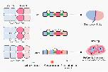 Fig. 8. Summary diagram comparing HIT and DITH situations. Two cell types A and B are represented in blue and pink. B-type cells abutting A-type cells are in darker pink. In a HIT situation (top), where heterotypic contact tension T AB is higher than the two homotypic tensions, cells tend to establish more stable contacts with sibling cells of the same type. At the tissue scale, this drives full segregation of the two cell populations separated by a sharp boundary. In a classical DITH situation (bottom), blue A-type cells will be able to cluster, but for dark pink B-type cells, heterotypic contacts may be more stable than homotypic contacts, thus these cells will tend to preferentially interact with the less tensile/more adhesive A-type cells, a situation that will not lead to clean segregation of the two cell populations. The middle row illustrates an intermediate situation, where separation may still be achieved provided a sufficiently strong difference between T AB and T AA |