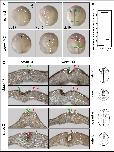 Fig. 5. hmmr impairs radial intercalation upon anterior neural tube closure. (A-J) Immunolabeling of α-tubulin (Tuba4a; A, C, E, G, I) and scanning electron microscopy (B, D, F, H, J) reveal progressive microtubule cytoskeleton polarization and cell morphology changes during neurulation in the anterior neuroectoderm (ANE) of embryos injected unilaterally with hmmr MO at the eight cell stage (st.). Dashed lines and color shading reveal cell shapes. Insets in (A2, C2, E2, G2, I2) demonstrate lineage tracer fluorescence in the respective area. Scale bars: 20 µm. (K) Analysis of the height / width (h / w) ratio of deep ANE cells. Note progressive elongation in control vs. failure to elongate in morphant cells. (L) Tilting of ANE cells as measured by angular displacement of cell apices, indicated by arrows in (D1, D2). Note that cells are initially aligned along the dorsal (d) to ventral axis and progressively tilt medially. Angles are binned in ten degree steps. Blue arrows indicate average angle of tilting, one concentric circle equals a frequency of one cell tilted in this direction. (M) ANE thickness as measured from apical side of superficial cells to basal side of adjacent deep cells; ratio between injected and control side reveals that loss of hmmr affects the ANE from st. 20 onwards. (N) Calculation of a layer index (Keller, 1980) shows failure of radial intercalation in morphant ANE. Note that layer analysis was impeded between st. 15 and 25 due to the complex interdigitation of individual cells. Numbers of specimens analyzed are indicated in each plot. Five cells were analyzed per specimen. ns, not significant. |