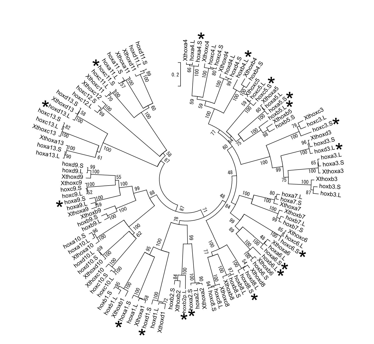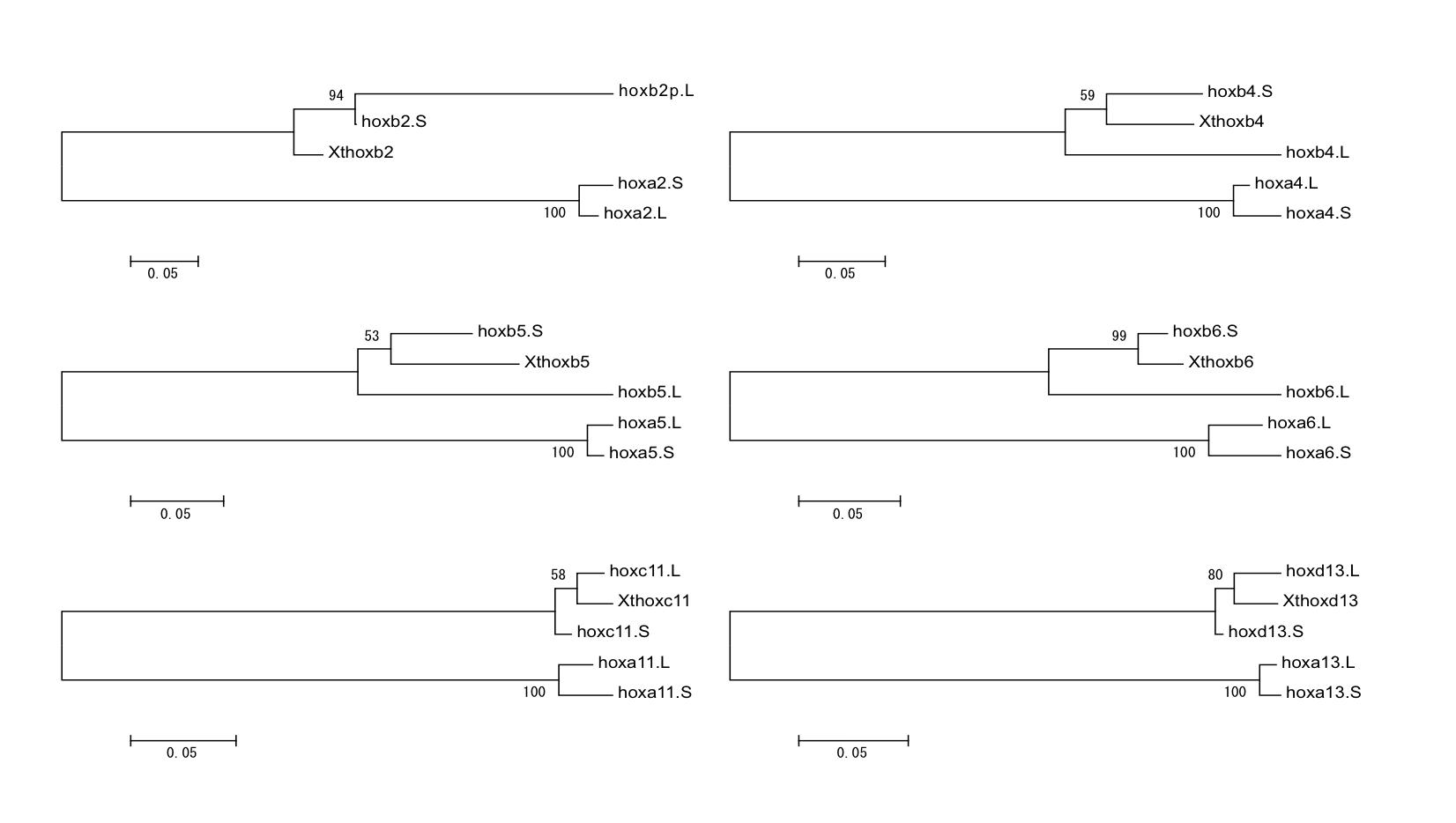 Fig. S1. Phylogenetic tree of the X. laevis and X.tropicalis hox genes. |
