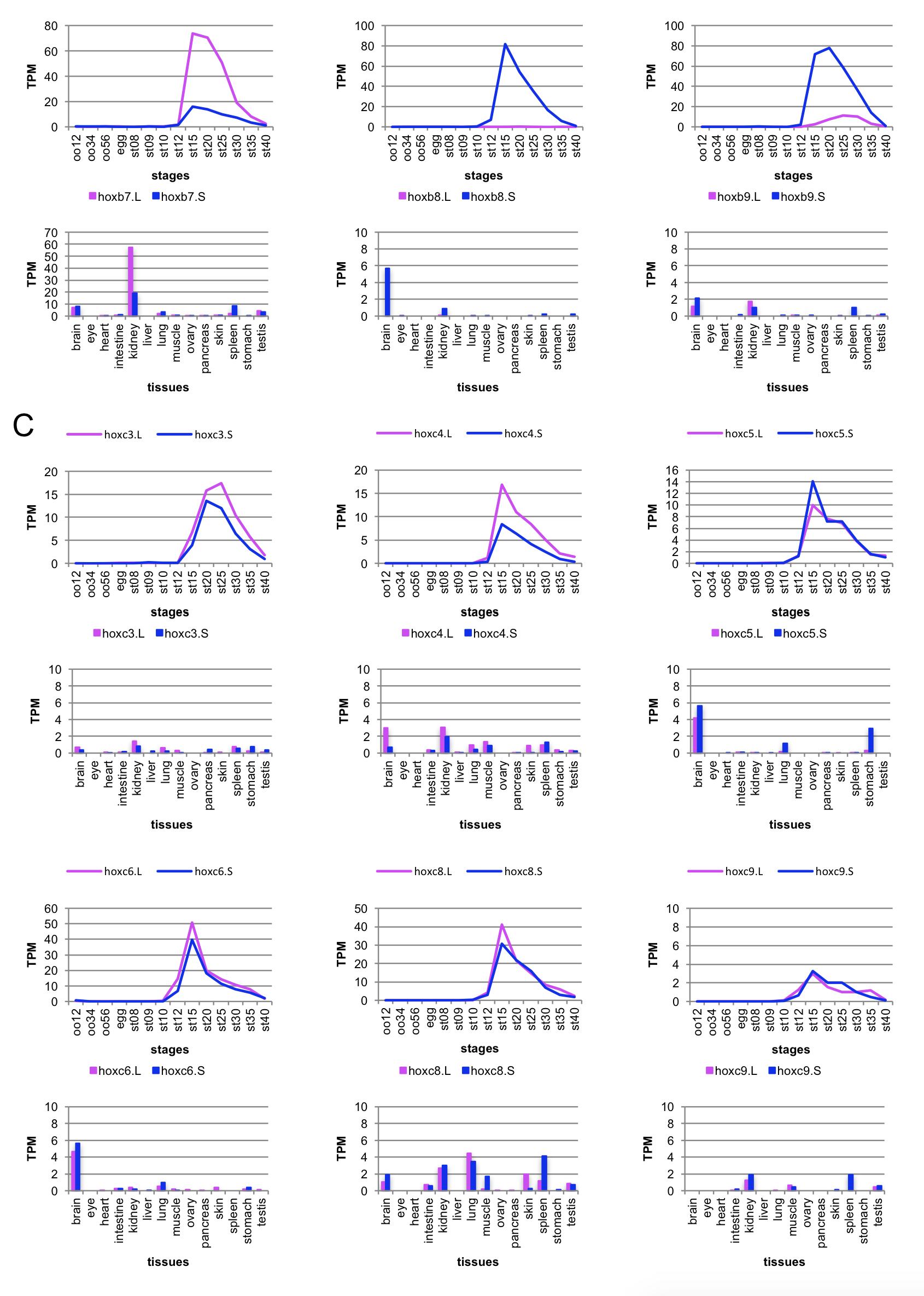 Fig. S3. Expression profiles of all 76 X. laevis hoxgenes. |