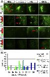 Figure 4. The 3â² UTRs of Xotx5b, Xvsx1, and Xotx2 mRNAs Direct Time-Dependent Inhibition of Translation(A) Examples of time-lapse imaging of lipofected retinas. Times are calculated starting from st. 30 [22] (which corresponds to time 0). To better visualize GFP, pigmentation was abolished as described [43]. Each micro-photograph shows the entire area of a lipofected eye and is focused on lipofected cells of the neural retina. Red arrows point to lipofected clones of cells.(B) Statistical analysis of 68 records. Bars express the proportion of lipofected retinas in which GFP was first detectable at a given time. Number of retinas examined is indicated by n. |