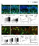 Figure S5. LI Analysis (A and B) Analyses of the BrdU-LI (the proportion of BrdU-labeled cells) in wild-type (wt) (A) and lipofected (B) retinas. BrdU was injected and detected as described [19,31]. Images in (A) show examples of retinal sections of wt embryos, after different times of BrdU in incorporation (h BrdU) starting from st. 30 and st. 34. White lines demarcate the central retinal region that was considered for quantitative analysis. BrdU-positive nuclei are detectable in green among DAPI-stained (blue) nuclei. L: lens. Images in (B) show magnifications of retinas (bordered by dashed lines) lipofected at st. 17 with cdk2/cyclinA2 (cdk/cyc [18]), or with XE2F [42], after BrdU cumulative incorporation from st. 34. White arrows point at BrdU-positive nuclei (detectable in red) of lipofected cells (detectable in green). Histograms show the percentage of BrdU-immunopositive cells among DAPI-positive cells (A), or lipofected cells (B), after cumulative BrdU incorporation; h indicates the time of incorporation (in hours); n reports the total number of cells counted; and error bars show standard error of the mean. Diagrams show the linear function used to calculate the length of the cell cycle, according to Takahashi et al. [39]; abscissae indicate time (in hours); ordinates show LI of wt (A) or lipofected (B) cells; and Tc and Ts estimate the duration in hours of cell cycle and S phase, respectively. Tc and Ts of control-lipofected cells (not shown) are virtually the same as those of st. 34 wt cells. In wt retinas, the proportion of cycling cells, expressed as 10 h LI, is higher at st. 30 (32% ± 0.34% standard error of the mean) than at st. 34 (23% ± 0.1% standard error of the mean). This proportion, at st. 34, is even higher in cdk2/cyclinA2âlipofected cells (45% ± 0.1% standard error of the mean) and in XE2F-lipofected cells (48% ± 2% standard error of the mean), which both delay the exit from the cell cycle. In wt retinas, the average cell cycle length, as evaluated by Tc value, increases from st. 30 (Tc = 5.1 ± 1.3 h) to st. 34 (Tc = 8.1 ± 0.6 h). Notably at st. 34, XE2F lipofection significantly reduces Tc (Tc = 5.5 ± 1.2 h) compared to control cells of the same age (Tc = 8.1 ± 0.6 h), whereas Tc is not significantly affected by cdk2/cyclinA2 lipofection (Tc = 7.8 ± 0.9 h). The changes in Tc observed among different types of cells are poorly affected by Ts, which ranges from 0.9 to 1.4. https://doi.org/10.1371/journal.pbio.0040272.sg005 |