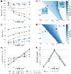 Fig. 7. Dependence of cell geometry on model parameters, using five unique simulations with 800 cells (4000 cells total) in a periodic box under zero net external pressure. (a) Mean circularity of cells per polygonal class, at parameter values indicated by corresponding symbols in -parameter space. (e) Mean cell area per polygonal class for given parameters, normalised by the mean area of hexagons. (f) Total area of all cells in each polygonal class, such that the sum of all points equals the area of the box. (Colour in online.) |
