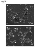 Fig. S6: Mesendoderm Cell morphology on FN and C-cad-FC substrates. (A-B) Representative images of dissociated mesendoderm cells plated on plastic dishes coated with (A) 10μg/ml FN and (B) 5μg/ml C-Cad-FC. After 1 hour, many of these cells have made contact and form small clusters. The morphology of these cells is similar to that observed on stretchable silicon substrates (e.g., Fig. 5A-D) but images of cells on coated plastic substrates are shown here because of the better optical quality. Protrusions are indicated by arrows. Scale bar=50um (A-B). |