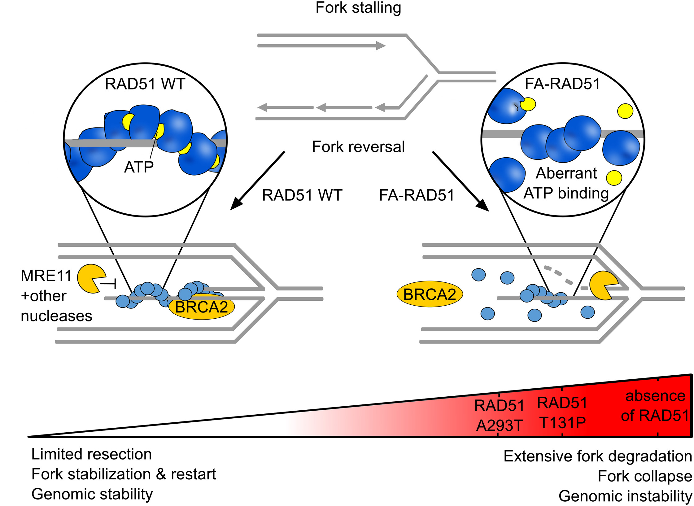 Figure 4. The Role of the RAD51 Filament in Protection of Stalled Replication Forks