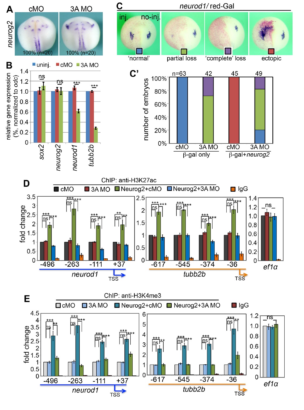 H3K4me3 (E) at the neurod1 and tubb2b promoters.