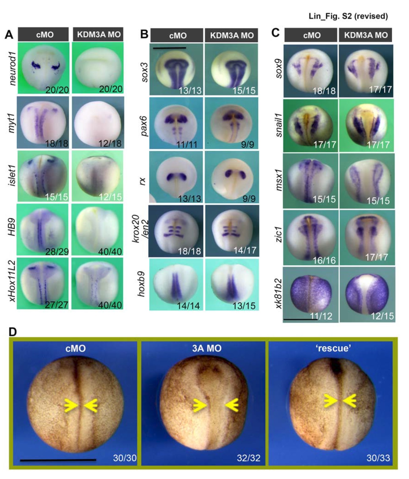 Xenopus and depletion of KDM3A using a second MO (MO2). (A, B) Embryos at