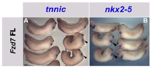 with full length of fzd7 showing normal heart tube indicated by nkx2-5 expression.