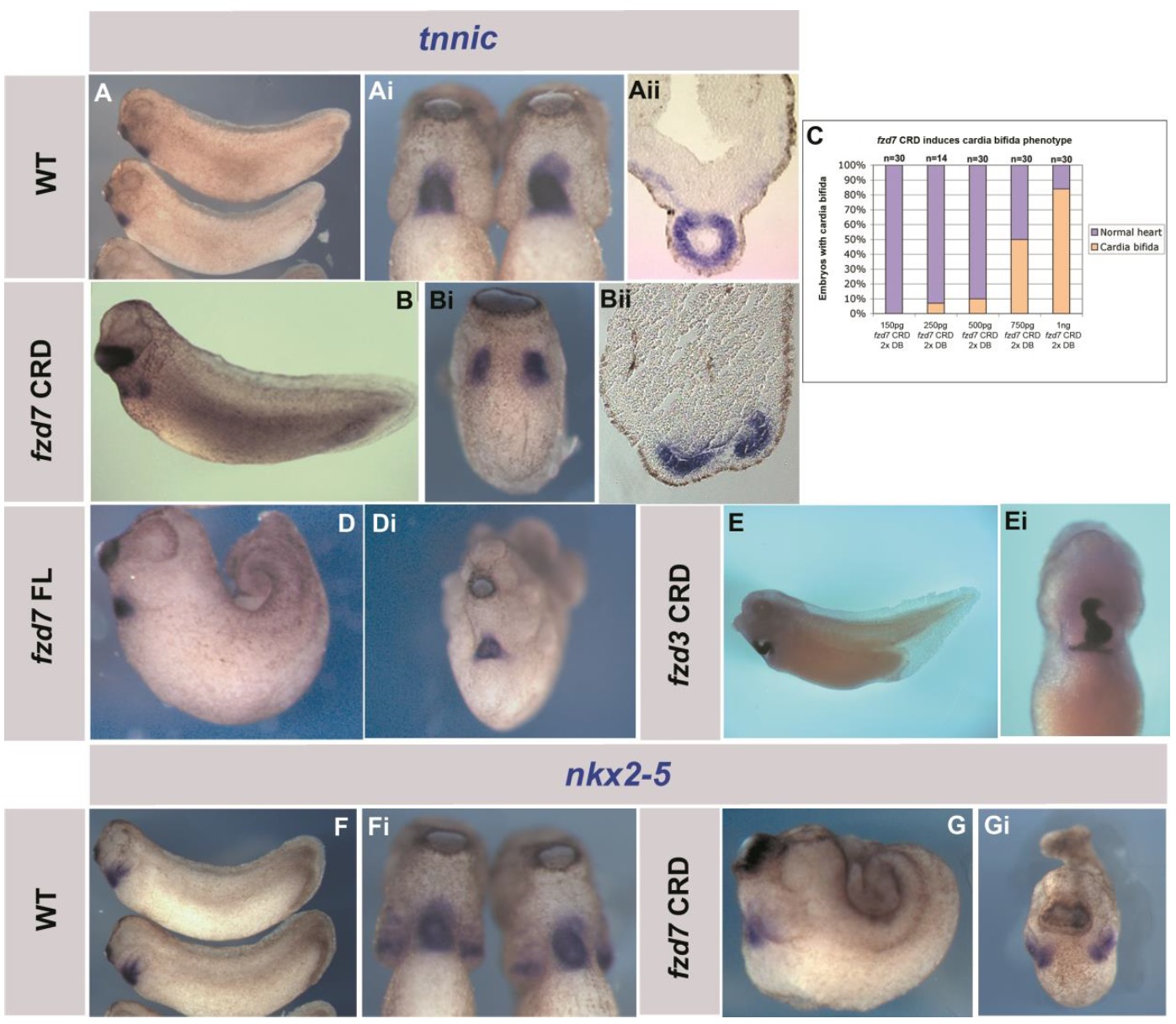 presumptive heart region. (C-Cii and D-Di): fzd7 and wnt11-R expression at stage 25.