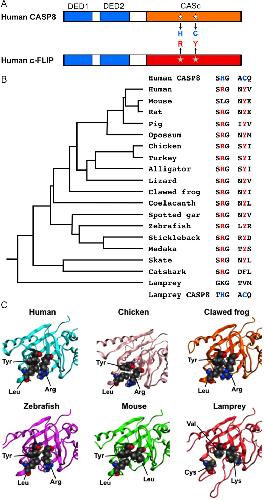 Sakamaki, Evolutionary analyses of caspase-8 and its paralogs: Deep origins of the apoptotic signaling pathways. 2015, Pubmed