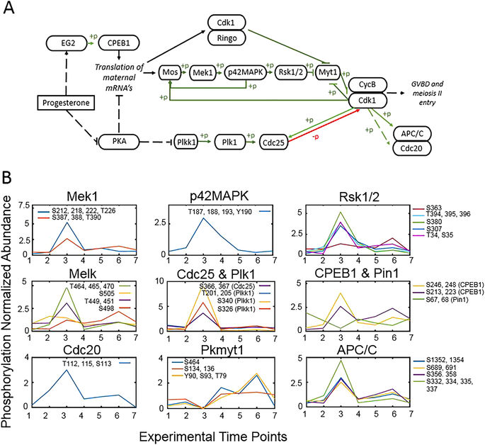 Genes referenced: anapc1 arrb1 arrb2 atm aurka bub1 ccne1 ccne2 cdc20 cdc25a cdc6 cdk1 cdk2 clasp1 cpeb1 csnk1a1 csnk2b dlgap5 eif3a eif4e eif4g1 eif4g2 elavl1 fmr1 gsk3a gsk3b gys1 lmnb1 lmnb3 map2k1 map4 mapk12 marcks mcm2 melk mki67 mos msi1 nol8 nolc1 pcm1 pin1 pkmyt1 plk1 prkcd rps6ka1 rps6ka3 sympk upk1b wee1 zp2 zp3.2 zp4 zpax