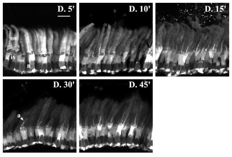 migrates rapidly to the IS during dark-adaptation. Following 45 min of light