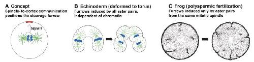 echinoderm eggs, aster pairs trigger furrows whether they grow from the same or different spindles. This shows that chromatin is not