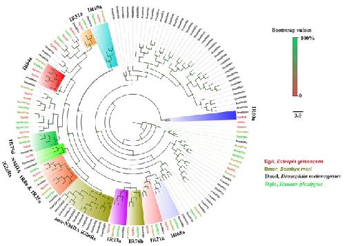 Figure 6. Phylogenetic analysis of EgriIRs with other typical insect IRs. Phylogenetic tree was constructed in PhyML3.0 using maximum likelihood method.