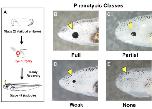To compare the quantity and quality of regrowth in operated eyes versus control eyes, we developed a Regrowth Index (RI) similar to one previously described for tail regeneration. Based on the calculation of the percentage of the number of individuals grouped to each category, each category is then multiplied by 3 (full), 2 (partial), 1 (weak), or 0 (none). The resulting number is a value ranging from 0 to 300, constituting the RI. A value of 0 denotes no regeneration in any of the individuals in the group, while a value of 300 denotes full regeneration in 100% of individuals within the tested group.
