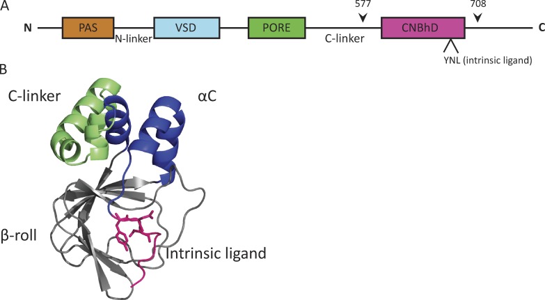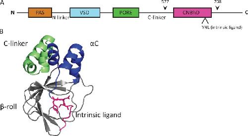 The intrinsically liganded cyclic nucleotide-binding homology domain promotes KCNH channel activation.