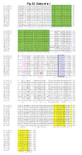 Fig. S2. Alignment of amino acid sequences of Otx2 and Otx5/Crx among vertebrates. Abbreviations of species are Xenopus laevis (Xl), Xenopus tropicalis (Xt), Danio rerio (Dr), Gallus gallus (Gg), Mus musculus (Mm) and Homo sapiens (Hs). Protein sequences were obtained from the NCBI database: Xl_Otx2.L (NP_001084955), Xl_Otx5.L (NP_001081916), Xt_Otx2 (NP_001016177), Xt_Otx5 (NP_001016021), Dr_Otx2 (NP_571326), Dr_Otx5 (NP_851848), Gg_Otx2 (NP_989851), Gg_Otx5 (NP_001288716), Mm_Otx2 (NP_001273412), Mm_Crx (NP_031796), Hs_Otx2 (NP_001257453), Hs_Crx (AAH53672). Boxes coloured in green, homeodomainY blue, SIWSPAS motifY yellow, repeated Otx tail motifY red, Otx2 mutation sites (P133 and P134) that were reportedly associated with human ocular malformation. Blue or magenta letters, consensus motifs for Akt and Cdks. Bold cases, putative phosphorylation sites of Otx2 as shown in this study. |