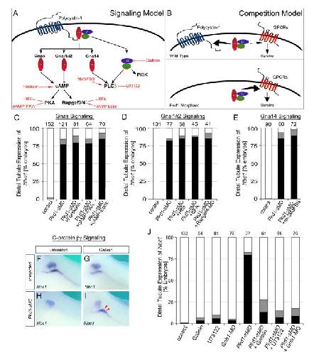Fig. 4. Connection between polycystin 1 and G-protein signaling in Xenopus. (A) Signaling model depicting Pkd1 acting as a GPCR. The four G-protein α